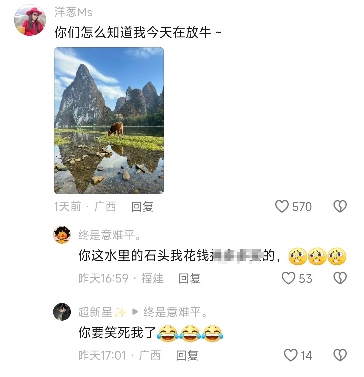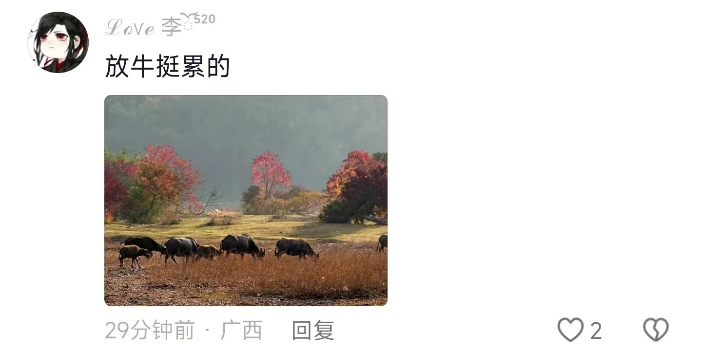 我突然好想去广西放牛了,别问我为什么,问我也不告诉你。