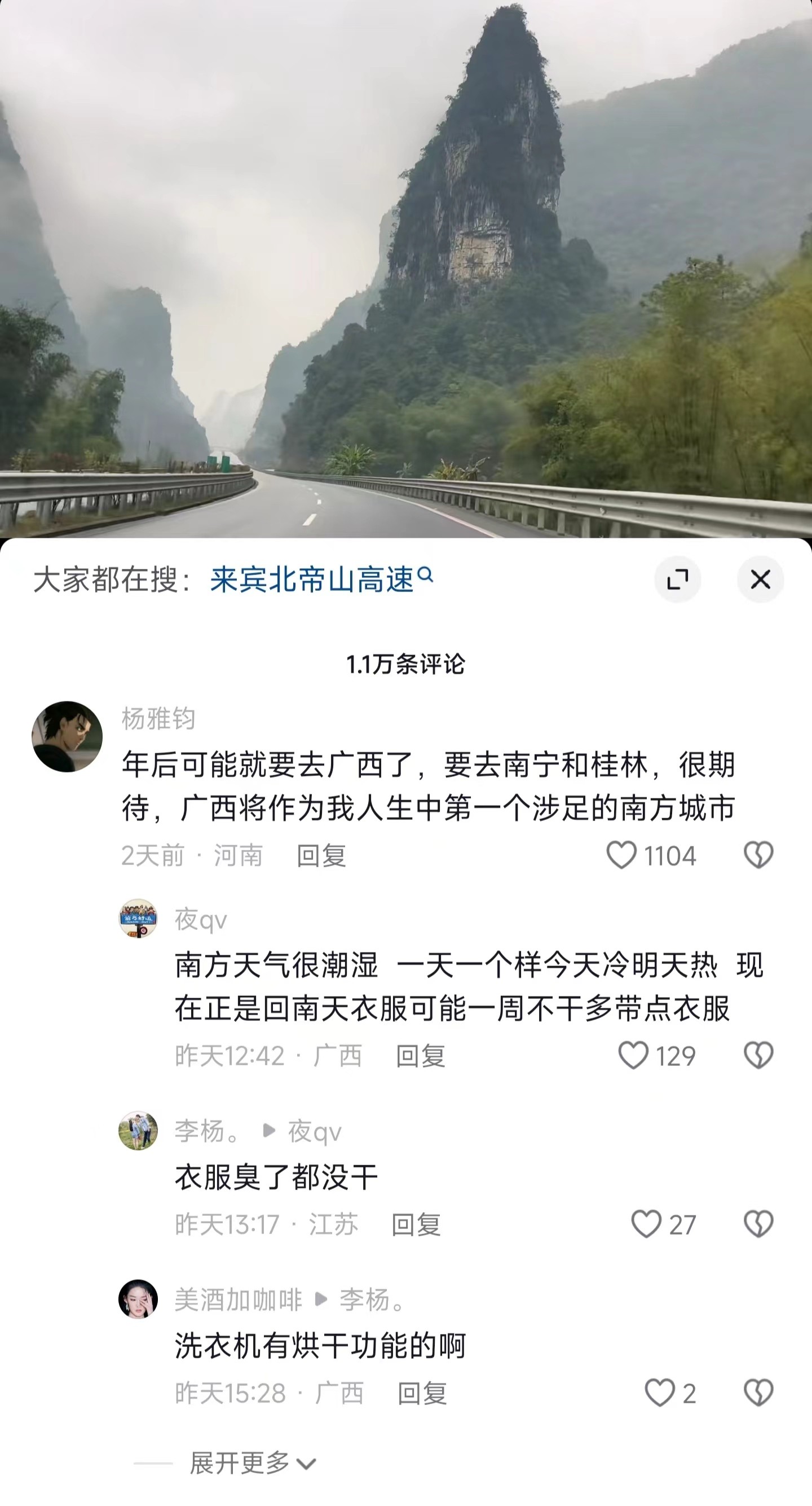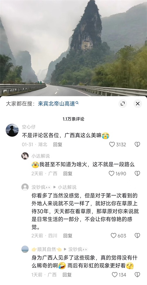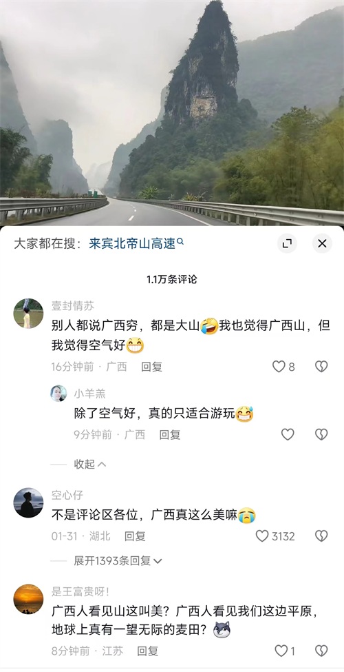 有博主分享广西最美高速引起网友热议,“广西真的那么美吗?”