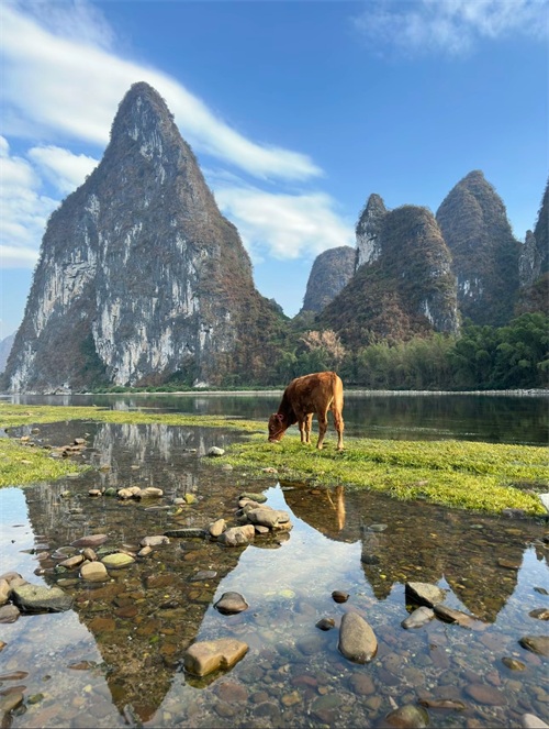 话说,这牛跟山水风景还挺和谐的。真羡慕啊,广西老表放牛都在“旅游”,这让别人看到不得得红眼病了,哈哈哈~