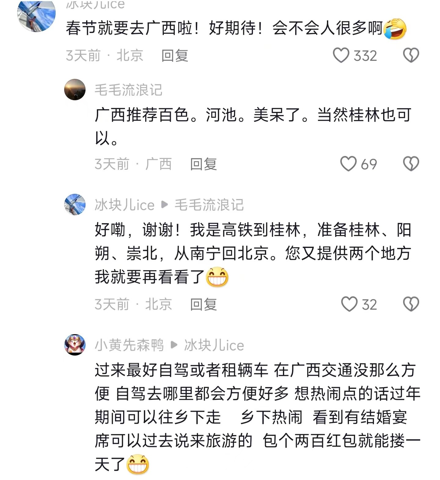 在广西游玩,自驾是真的比较方便一点,很多景区交通的确不是很方便。但是在春节,开车可能也堵。