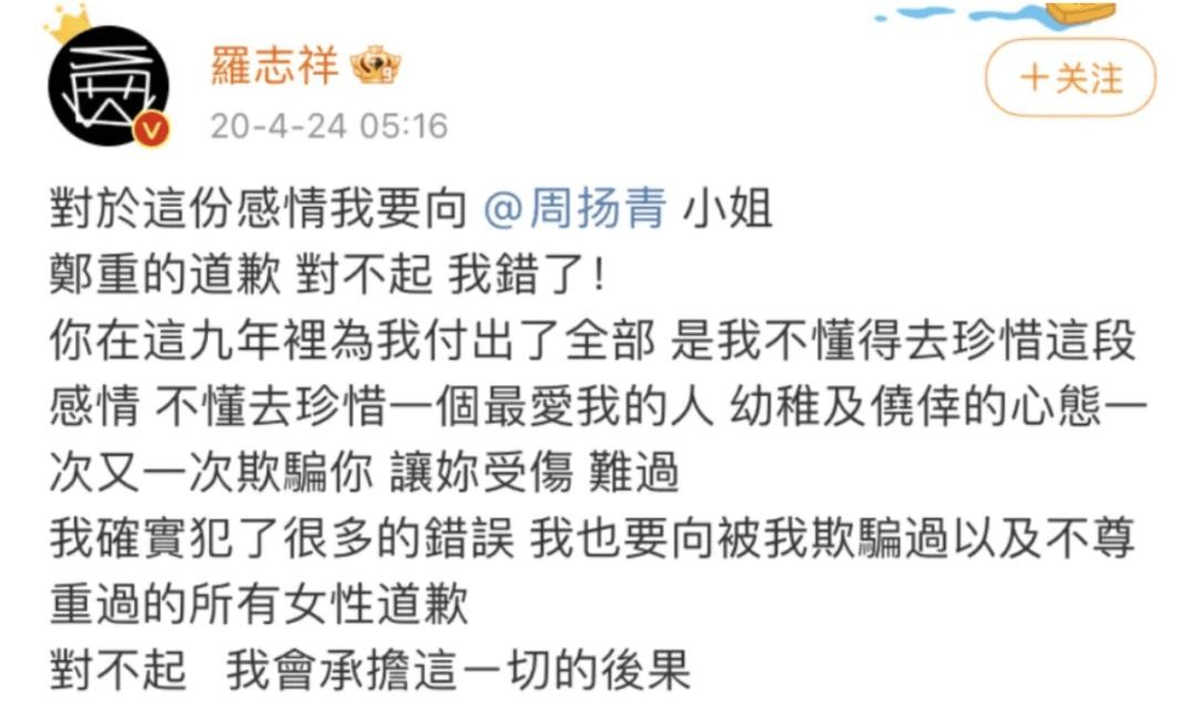 罗志祥否认与多名女子通宵,扮女装,贯彻厚脸皮的他还能东山再起吗