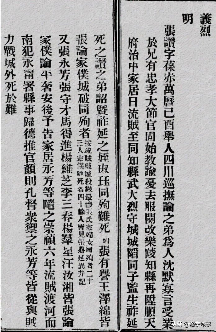 河南巡按、监察御史刘令誉向朝廷上《报故疏略》云:“钦差巡按河南御史刘令誉为乡官病故事,看得已故乡官张论当戎马生郊之日,正县官缺人之时,彼一时也,援兵猝未及至,城守闲其无人,永之危不啻垒卵,本官捐资而制防守之具,倡众而为捍御之谋,露宿城堞者凡七阅月,永之不为卢渑续者,皆本官之力也。然疆场无恙,而本官旋以劳瘁告竣,此河南士民万耳万目共闻共见者。”