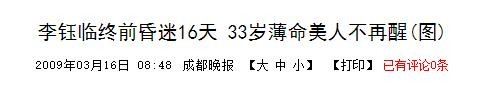但没想到天妒红颜,2009年3月初,她的情况急转直下,一度陷入昏迷半个月之久。