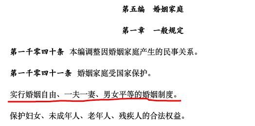 也就是说我国法律明确规定施行一夫一妻制度,任何“一妻多夫”或者“一夫多妻”制度在我国都是违反的。