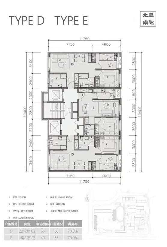 中信城四期,一共6栋7-15层高板楼,产品面积段为65平1居,88平、89平两居,120平、130平3居,得房率预计约71%。