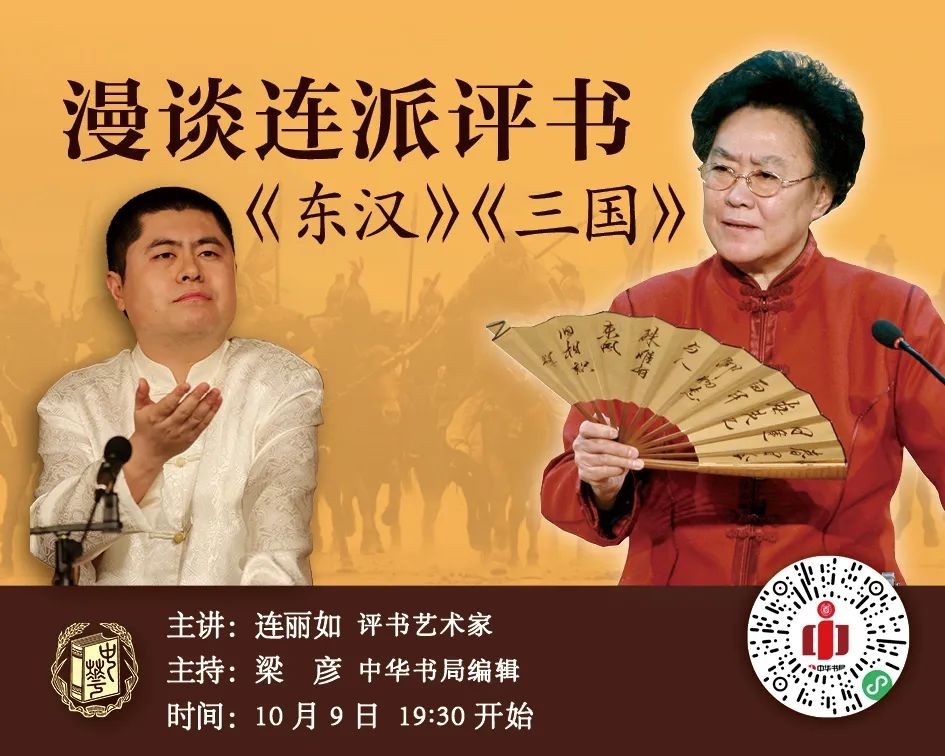 本周五晚七点半,中华书局特邀评书艺术家连丽如先生做客直播间,与朋友们漫谈连派评书《东汉》《三国》。