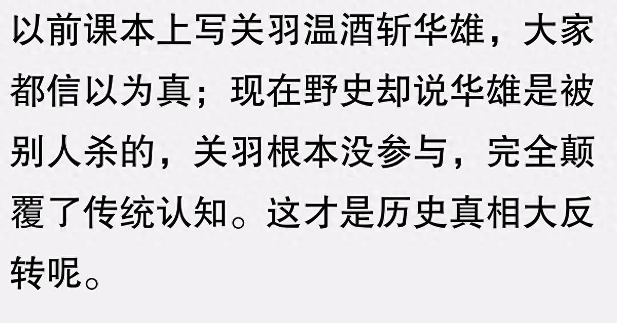 野史不一定真,但一定够野。网友:是“温酒”斩的华雄,不是关羽
