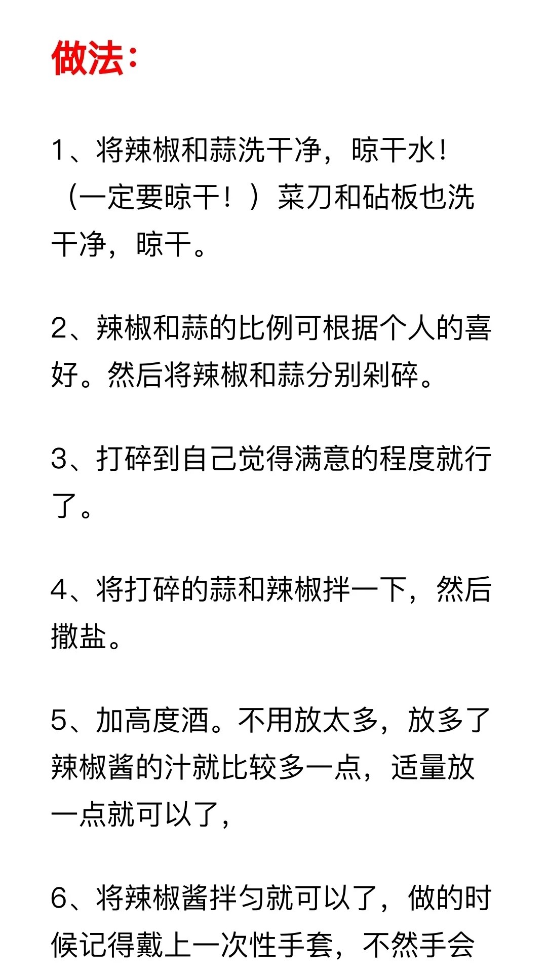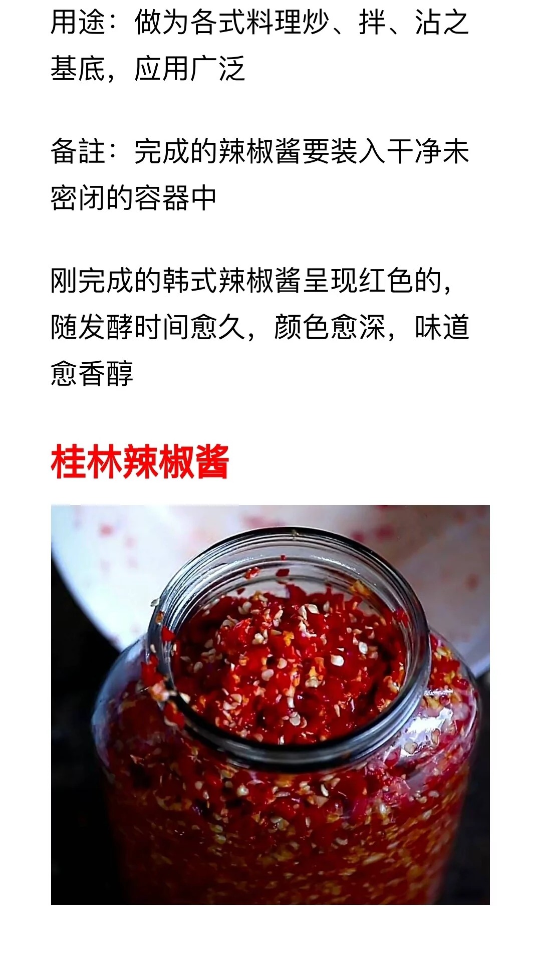 下面是自制蒜蓉辣椒酱、韩式辣椒酱、桂林辣椒酱、黄豆辣椒酱、香酿辣椒酱、超下饭自制辣椒酱、辣椒酱、秘制辣椒酱、香菇辣椒酱的做法