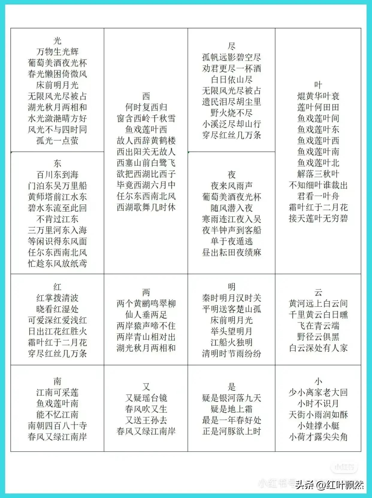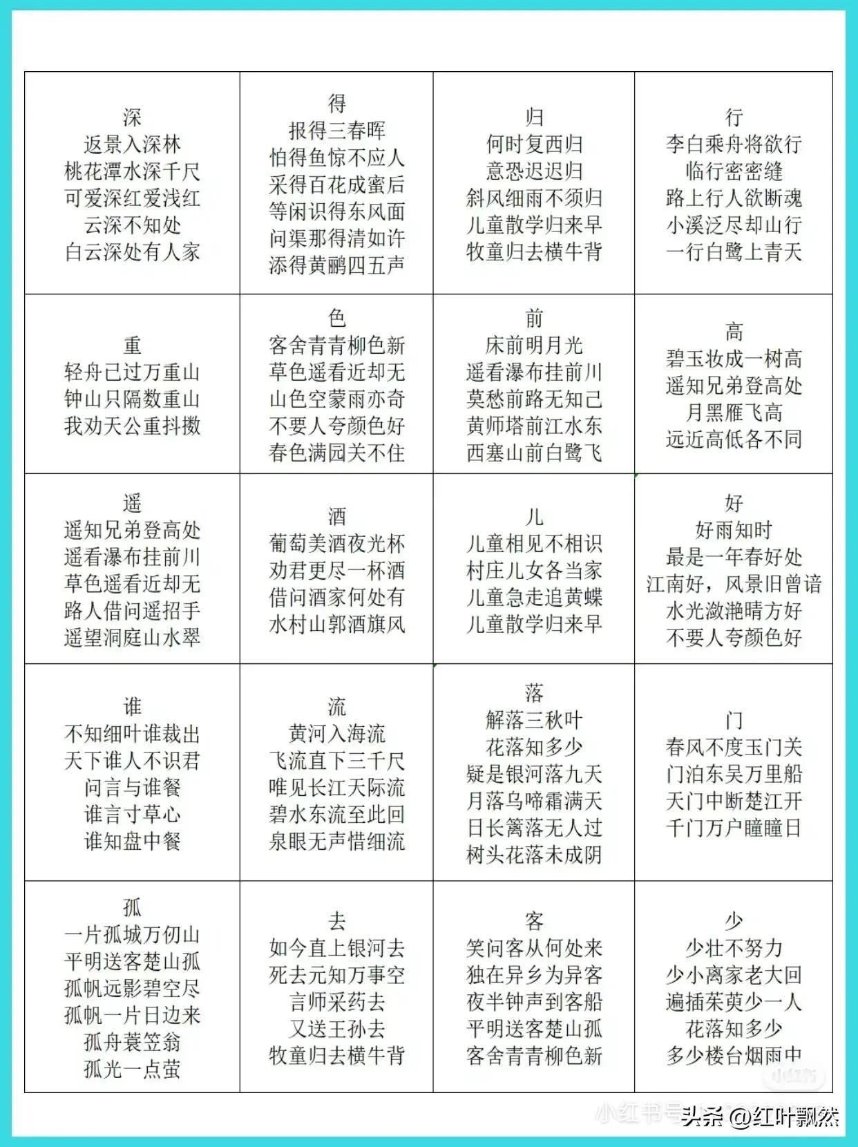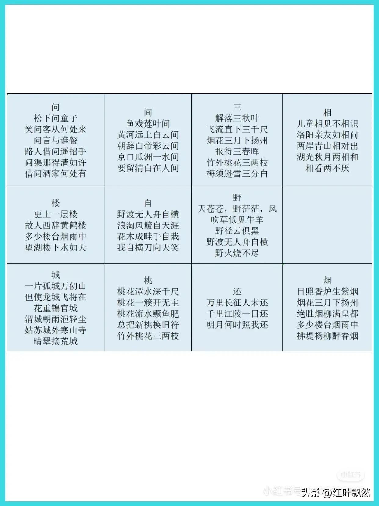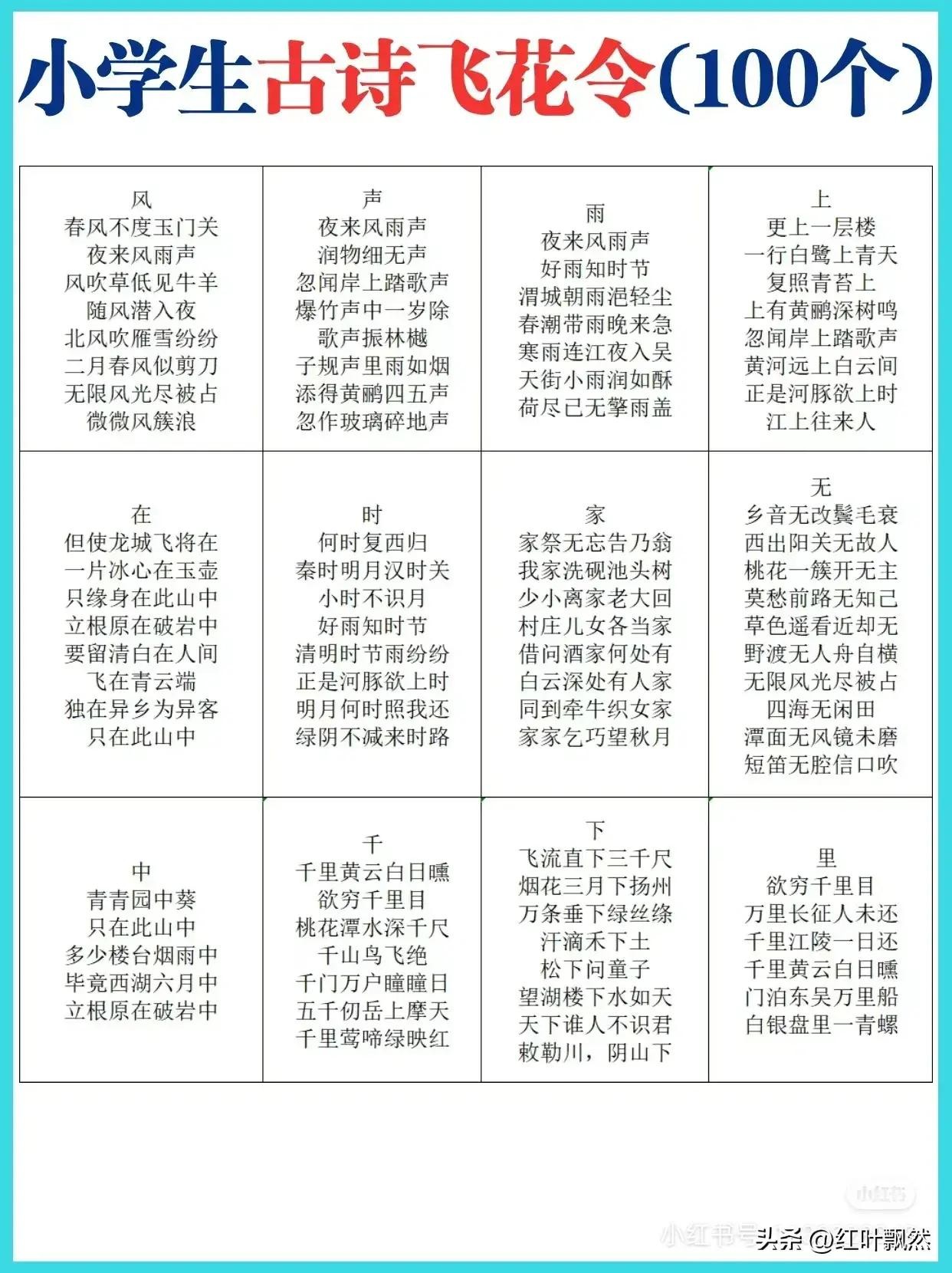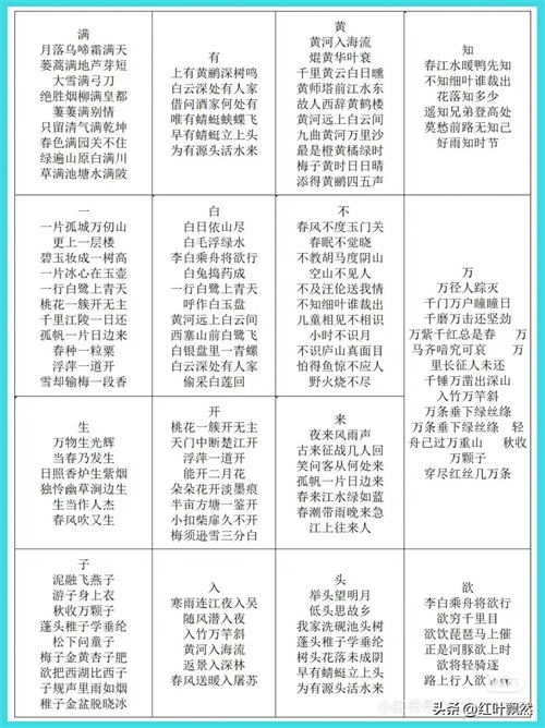 小学生古诗词飞花令100个,快替孩子收藏吧!