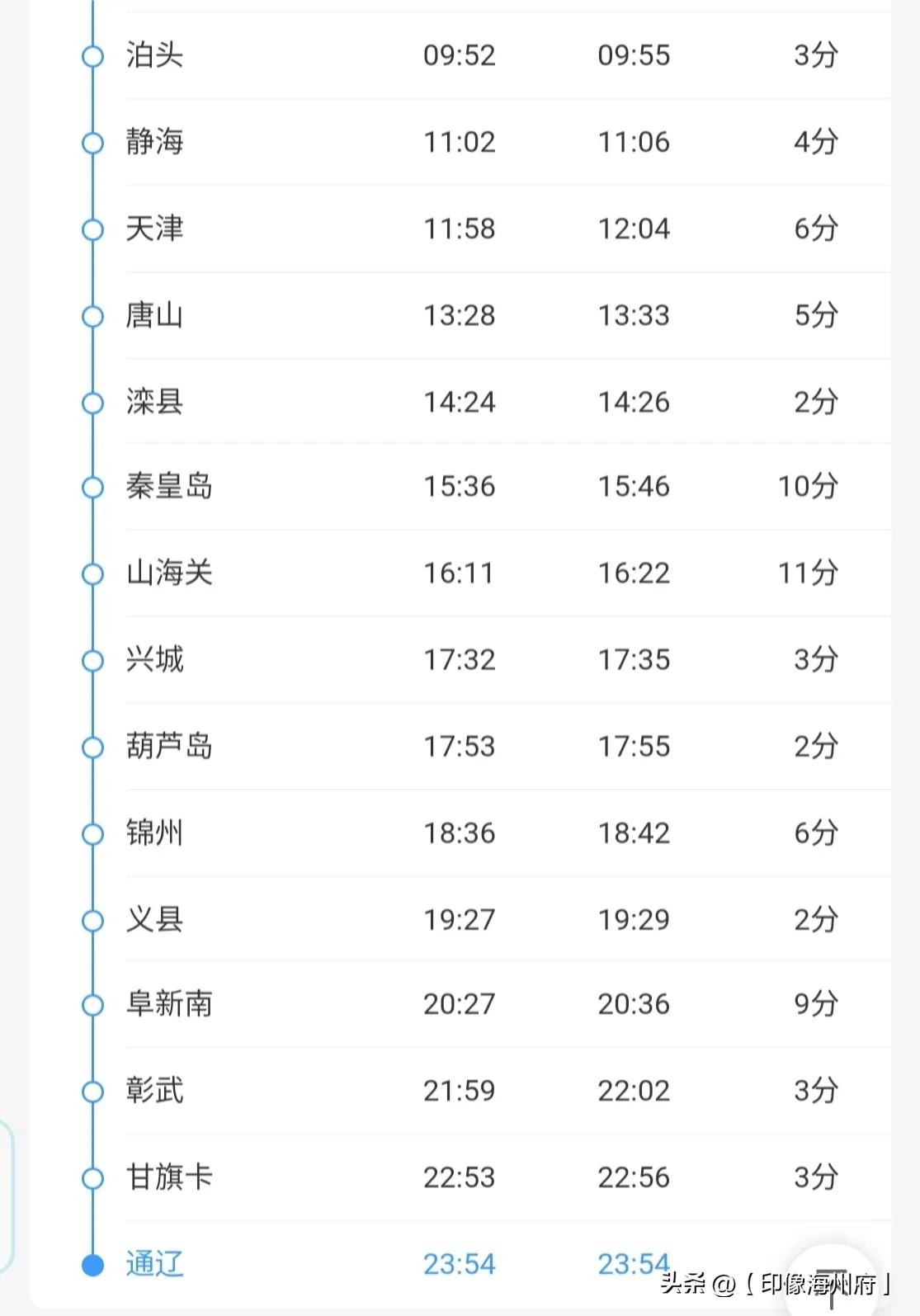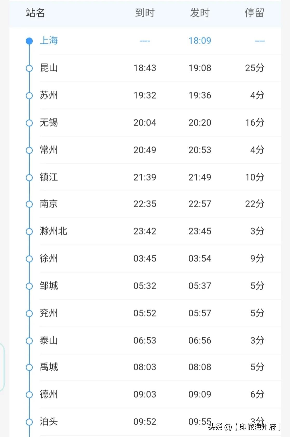 上海、昆山、苏州、无锡、常州、镇江、南京、滁州北、徐州、邹城、兖州、泰山、禹城、德州、泊头、静海、天津、唐山、滦县、秦皇岛、山海关、兴城、葫芦岛、锦州、义县、阜新南、彰武、甘旗卡、通辽。