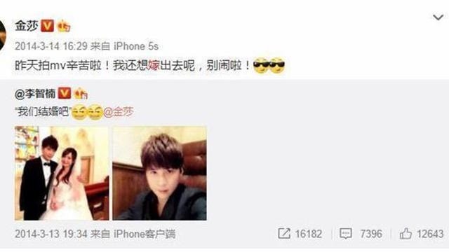 李智楠专门在情人节喊话金莎“我们结婚吧”;