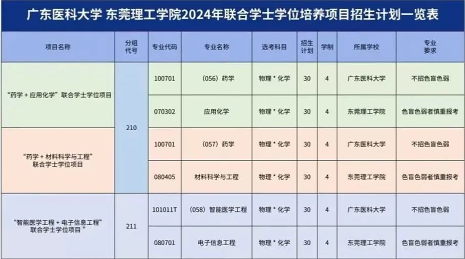“药学+应用化学”“药学+材料科学与工程”“智能医学工程+电子信息工程”三个联合学士学位项目招生计划及培养方案旨在通过校际合作,共同培育更加贴合相应专业未来发展需要的医工联合交叉学科复合型人才。