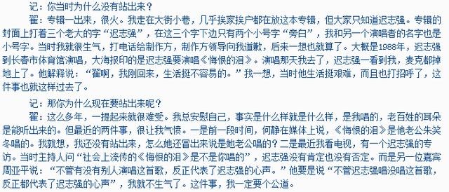 另外,“替唱”迟这个事,志强也决定不了什么,翟惠民与他当时都属于“工具”。