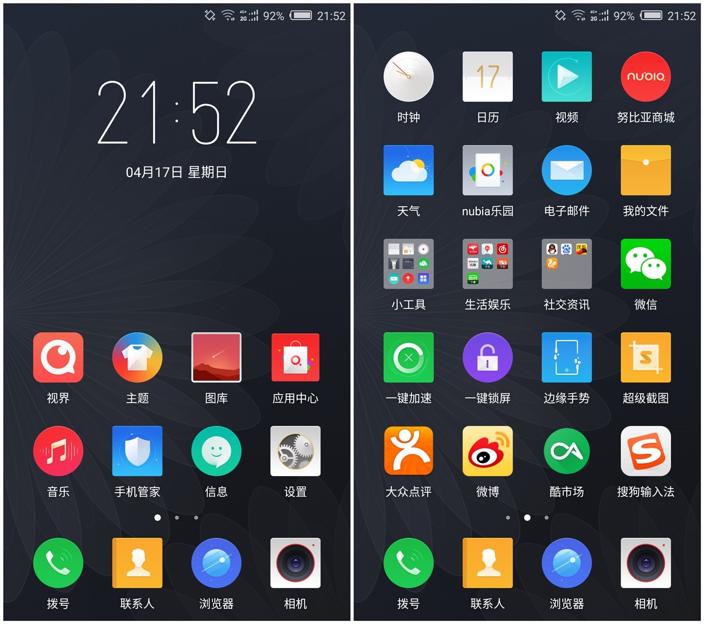 系统方面,本次 nubia Z11 mini 搭载的是最新的 nubia UI 3.9.6,令人欣慰的是,时隔几个月后再次体验这套新的 UI 时,系统的整体流畅度和稳定性都比此前的版本要好上不少,不仅配色上更为大胆,还有全新的图标设计,UI 细节也比旧版本更有张力。