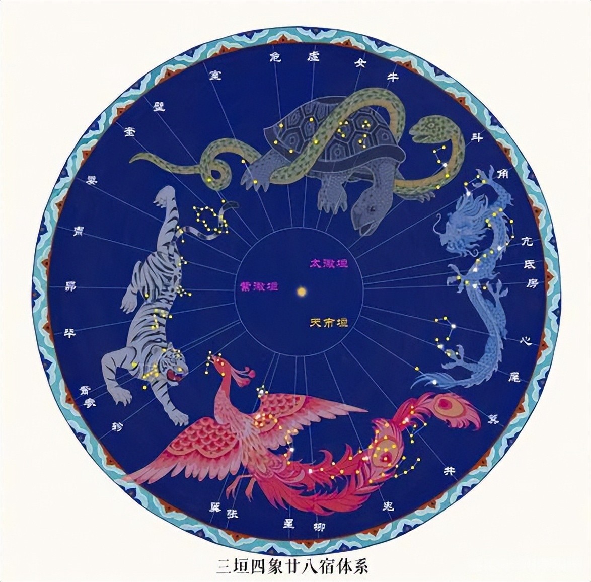 而在《淮南子》当中,除去这四象之后还额外添上了一个黄龙,它们被并称为天官五兽,是开创天地的五大神兽。
