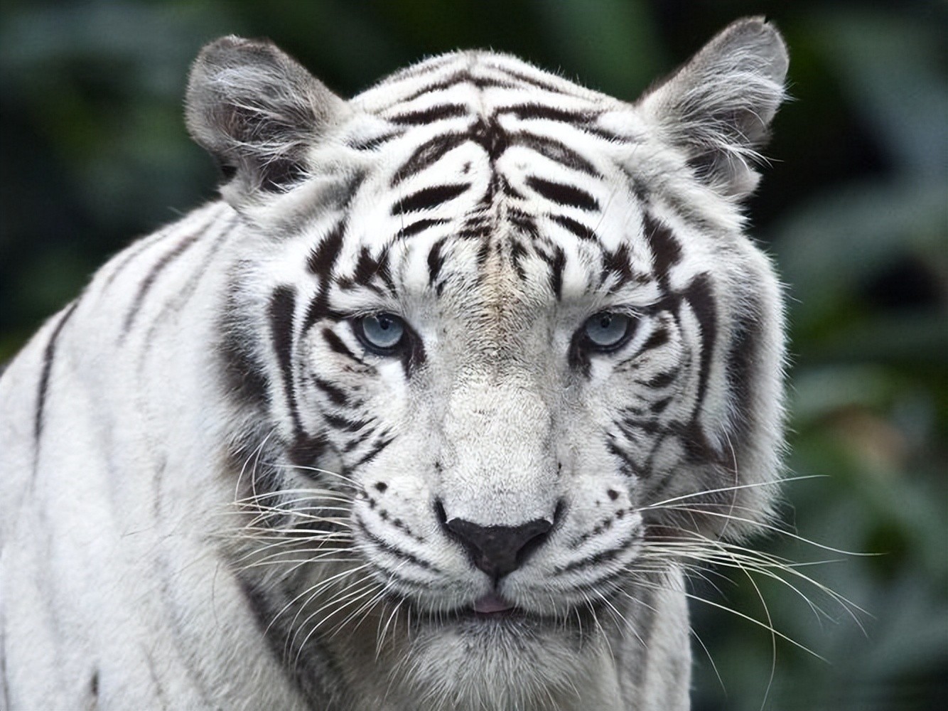 而这是因为老虎在出生的时候基因发生了突变,从而患上了白化病,造成全身颜色发生了变化,与之类似的还有白象、白海豚之类的生物。
