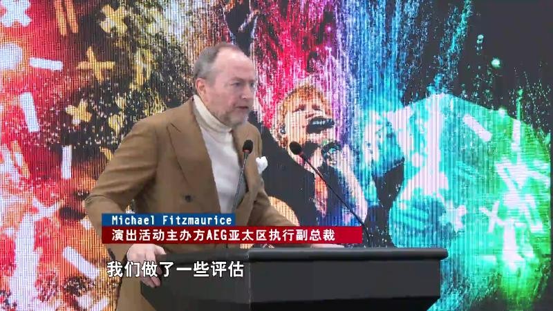 演出活动主办方AEG亚太区执行副总裁 Michael Fitzmaurice :我们做了一些评估,给艺人提供了不同城市的选择,从设施、古典与现代的结合、城市的人道主义、地址、政府支持等方面进行考量,艾德·希兰和他的经纪公司共同认为,杭州就是举办系列演唱会的绝佳场地。