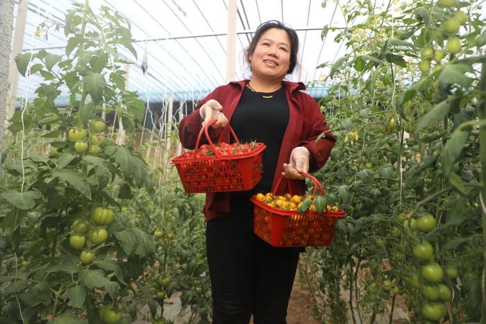 滨州日报/滨州网无棣讯2月29日,无棣县车王镇大武村蔬菜基地的员工在大棚里忙着采摘圣女果、给西红柿授粉。