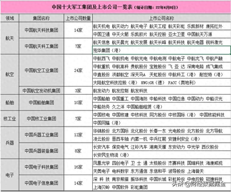 中国十大军工集团及上市公司全览