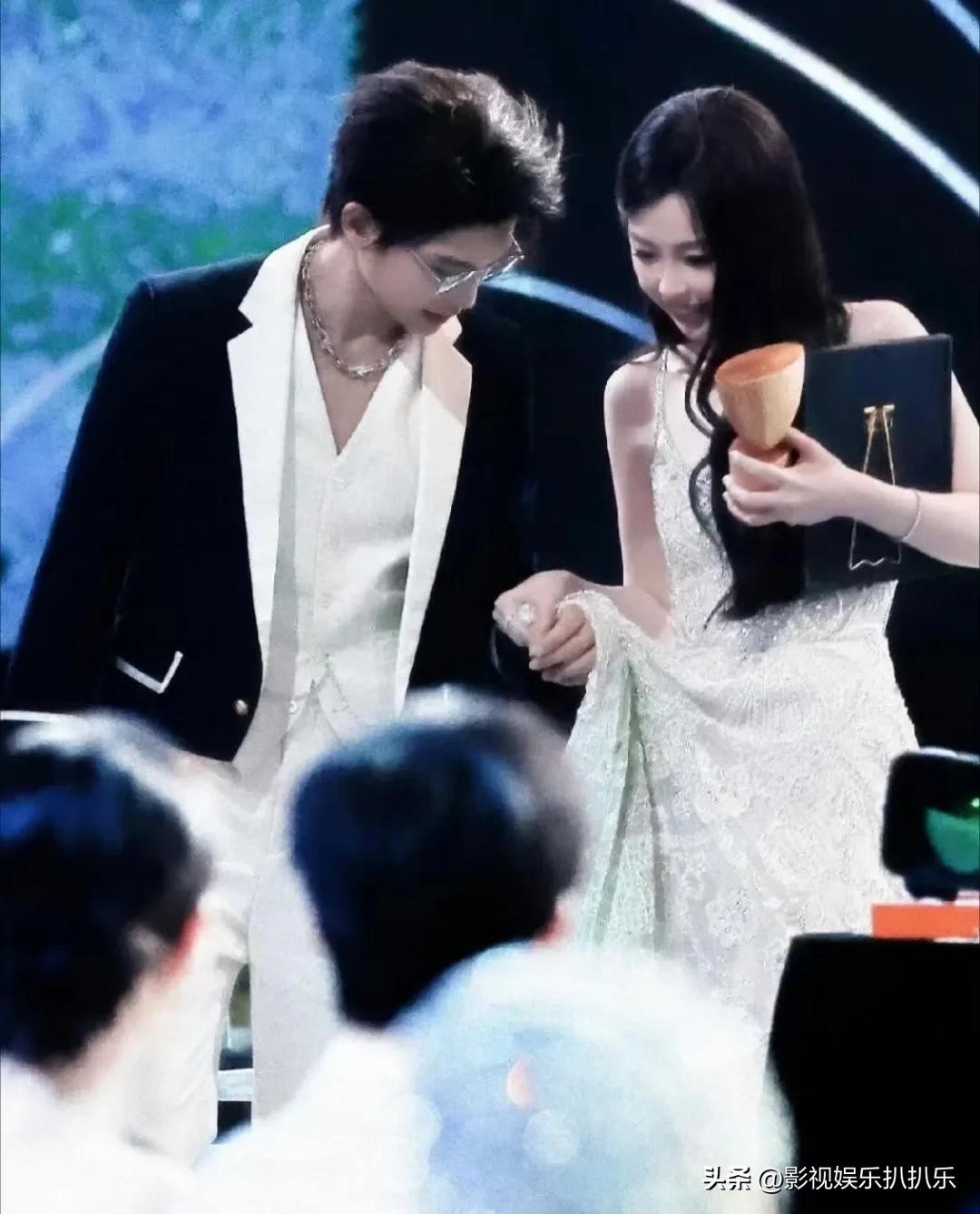 近日虞书欣与丁禹兮一起参加星光大赏,在虞书欣领奖发言时,丁禹兮在台下关注着她,直到虞书欣下台,丁禹兮积极地到讲台去迎接,现场气氛非常欢乐,众星都现场磕CP,张碧晨也是其中之一。