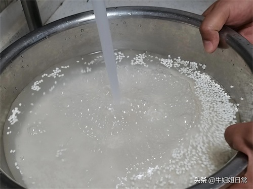 2、糯米洗净,浸泡约30分钟左右。