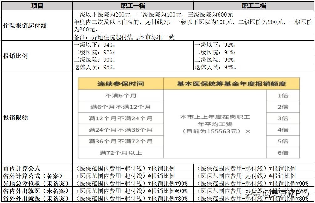 【4】职工一档和二档的定点医疗机构住院待遇对比: