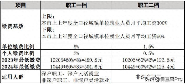 深户职工只能参保一档,非深户可以参保职工一档和职工二档、灵活就业人员也只能按一档参保。