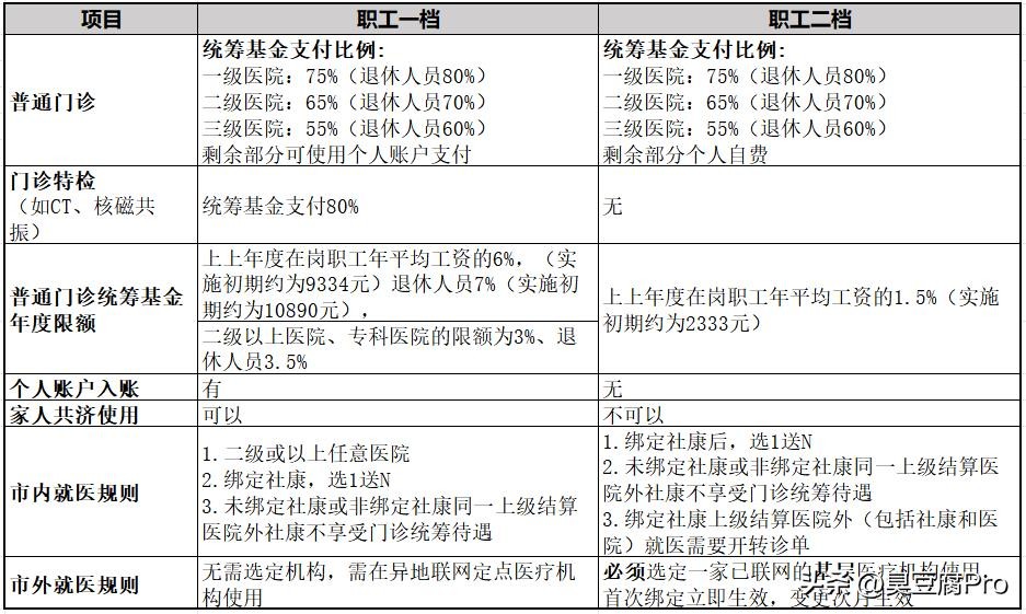从上表可见,在差异在门诊特检、统筹账户年度额度、个人账户、就医规则等方面一档医保还是有较大优势的。