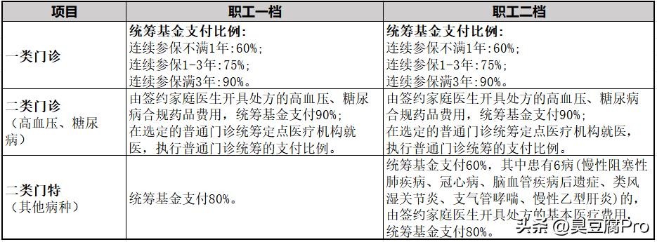 【3】职工一档和二档的门诊特定病种待遇对比: