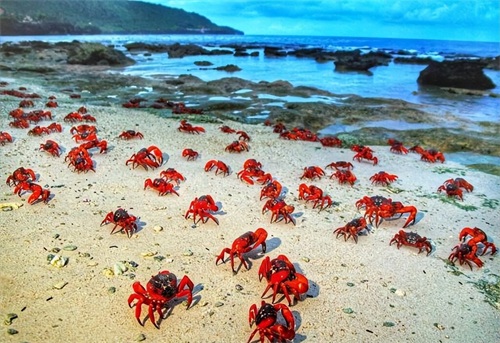 每年的十月至十一月,圣诞岛上都会上演一场规模浩大的红蟹大迁徙,成千上万只红蟹涌向大海,形成了壮观的景象。