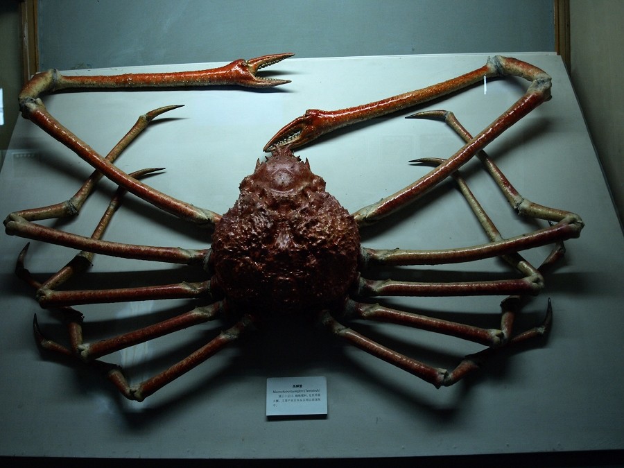 最庞大的样本,腿展开后长达4.2米,身长达38厘米,重达20千克,宛如海底的巨型怪物。