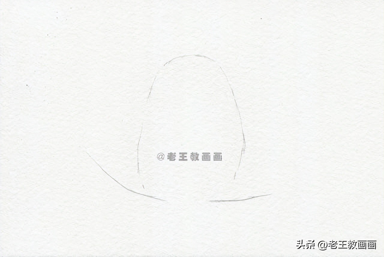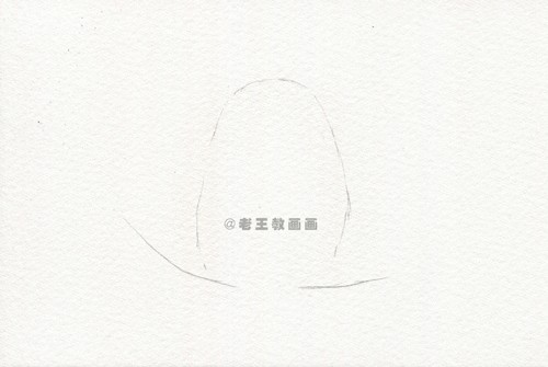 >>>【第1步】:用2B铅笔画一条月牙线条,再画一个倒着的"U"