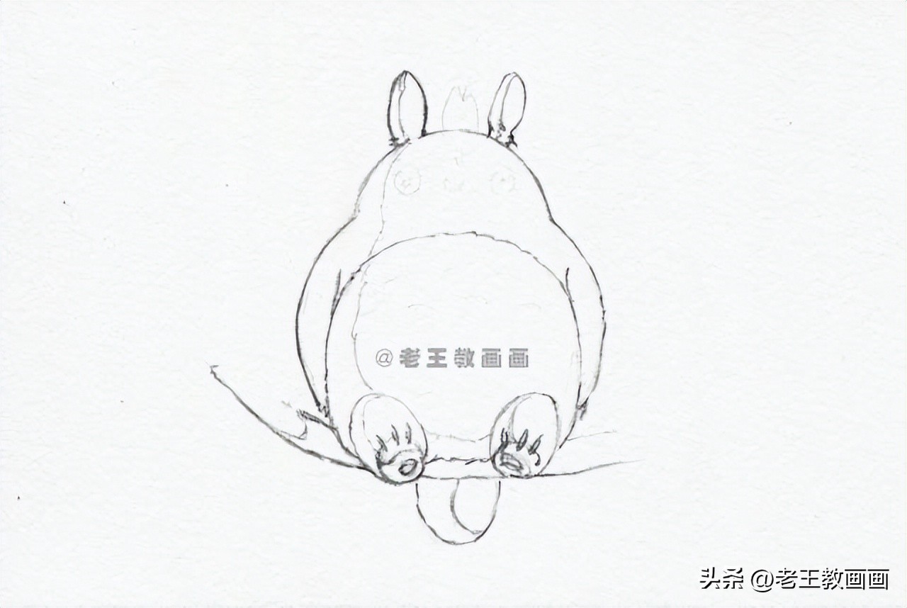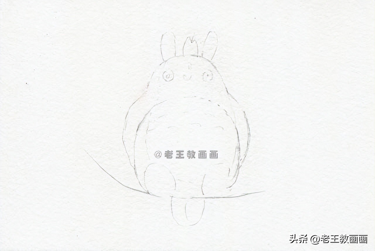 >>>【第3步】:用2B铅笔把龙猫的形体边缘画的实一些。画出来基本的形体,更容易去刻画塑造。。
