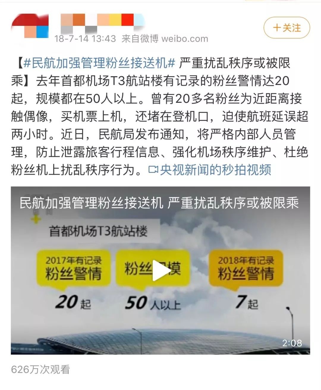 为此,民航局于去年的7月11日发布了《关于加强粉丝接送机、跟机现象管理的通知》。其中主要指出了三点具体的管理方向:防止泄露知名旅客信息;强化机场秩序,避免粉丝大量聚集;杜绝粉丝机上扰乱秩序行为。