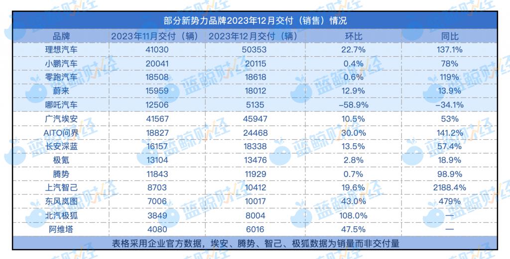 理想稳摘新势力年度 " 销冠 ",哪吒 12 月销量大幅下滑