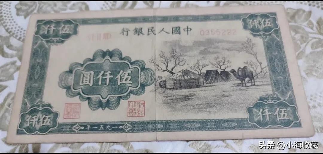 第9张1951年发行的蒙古包面值5000元,仅在内蒙古发行用于城市流通的特殊币种