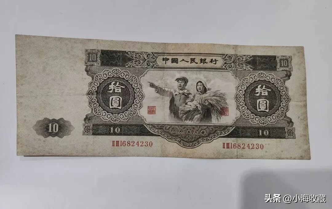 第7张1953年发行的大黑十被誉为第二套人民币的钞王,也是收藏价值最高的一种。市场价值30万元以上。