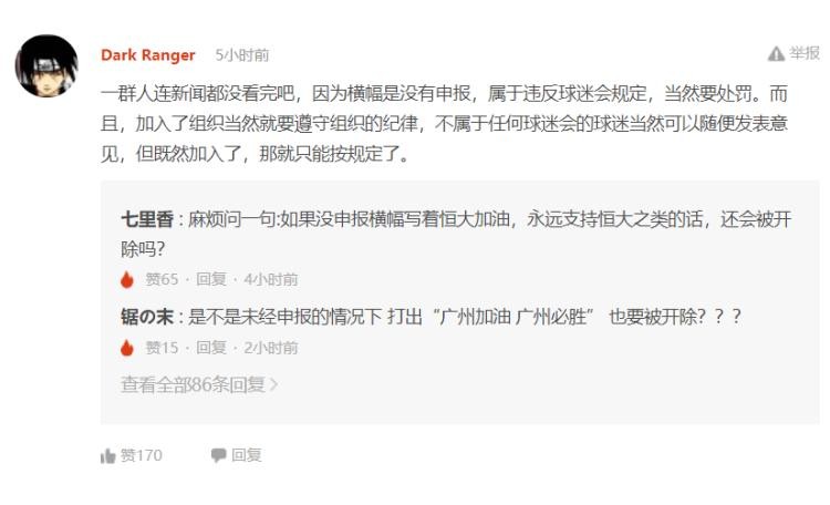 “抗议球员谢场不认真”遭开除?恒大球迷会官方:横幅未经申报,影响极其恶劣