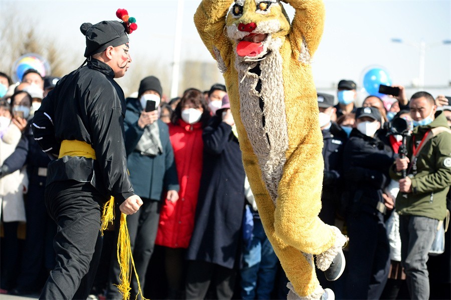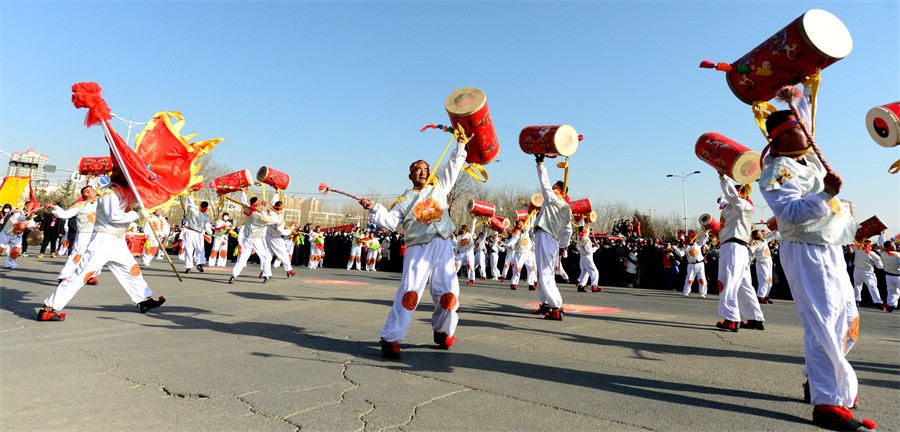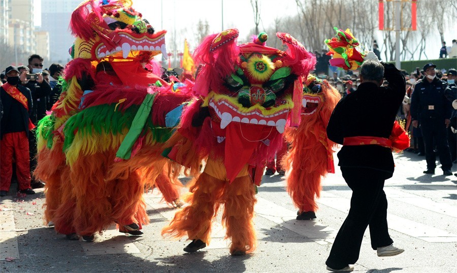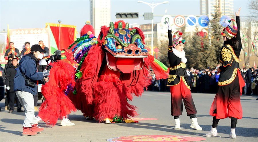 舞龙斗狮、秧歌、太平鼓、腰鼓、走高跷、铁芯子、滚灯、划旱船……2月2日,农历正月十二,甘肃永登县“非遗过大年,文化进万家”系列展演纷纷亮相,13支代表队带来了一场极具地方特色的文化视觉盛宴。
