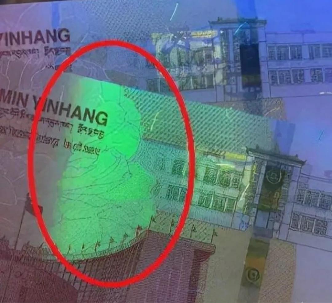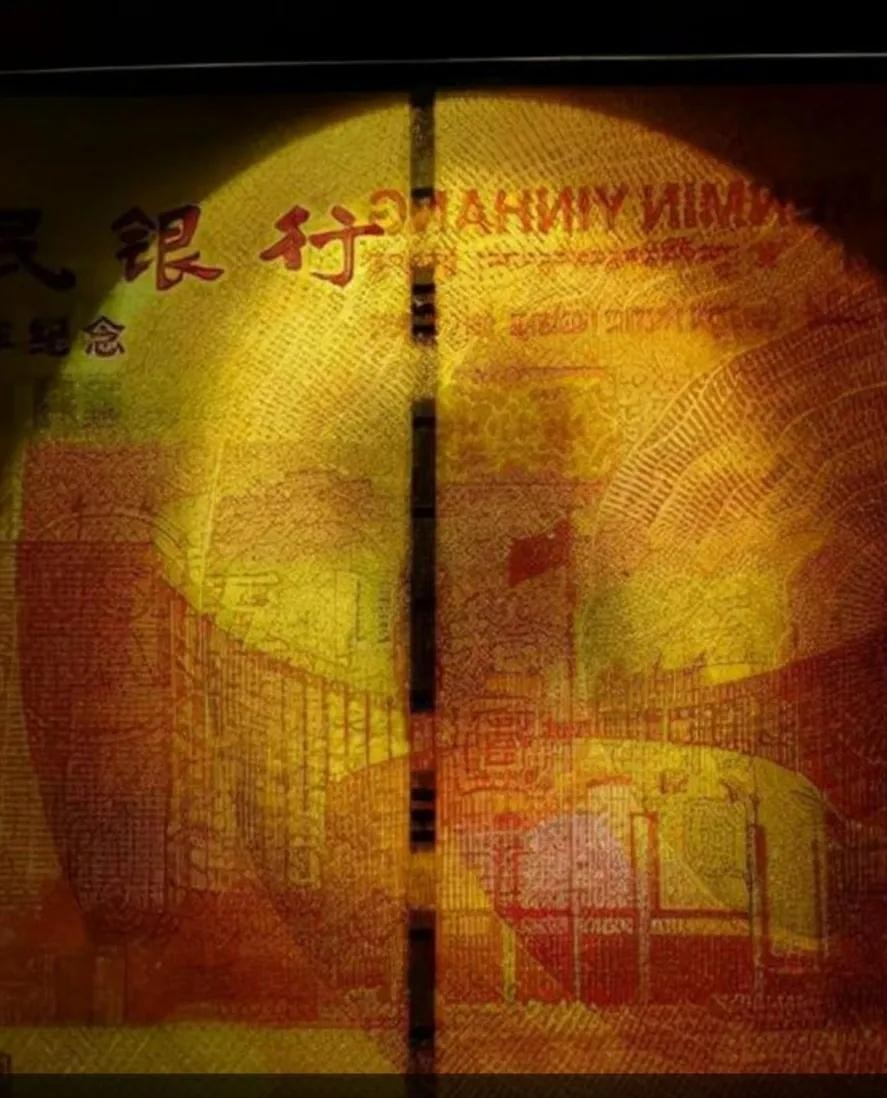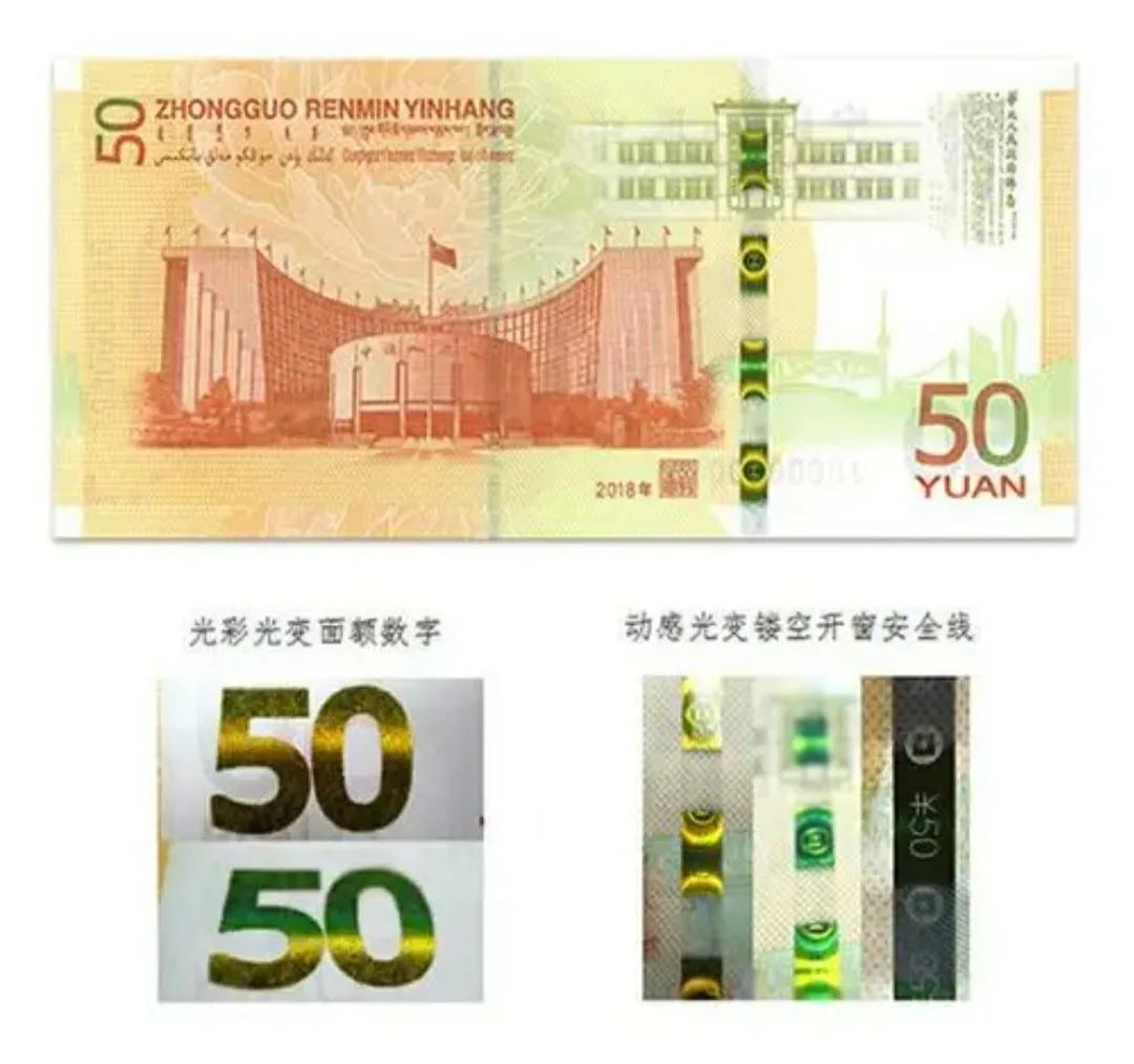 3、竹节钞则是防伪线断裂没有50字样,正常这条防伪线有4-6个50字样,在灯下非常清晰,且防伪线看起来像竹节一样断断续续。