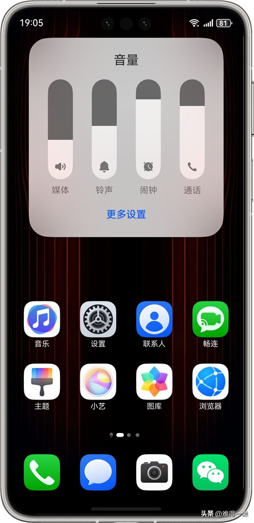 如果需要进行各种场景的调节,可以长按,然后打开更多设置,这样就可以进入音量设置主页,在这里进行分类调节。