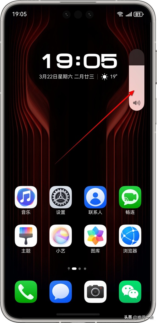 操作方法:按一下音量键,然后长按弹出的音量条。