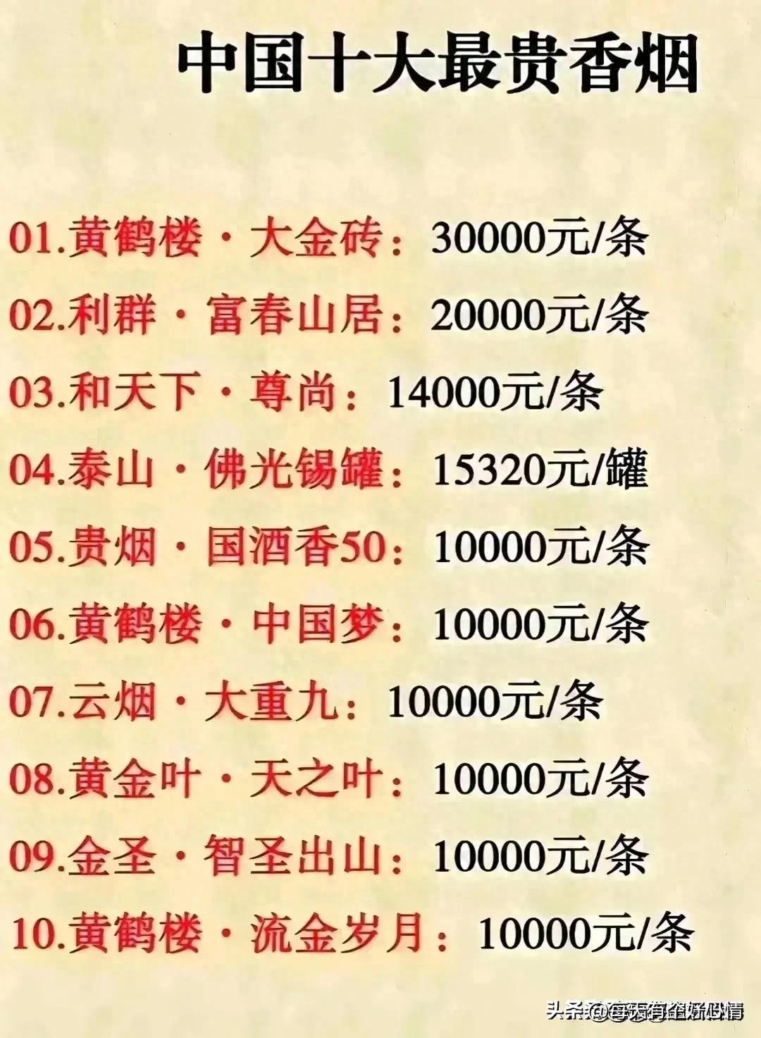 终于有人把我国十大最贵香烟整理出来了,我不信抽了它就能变神仙