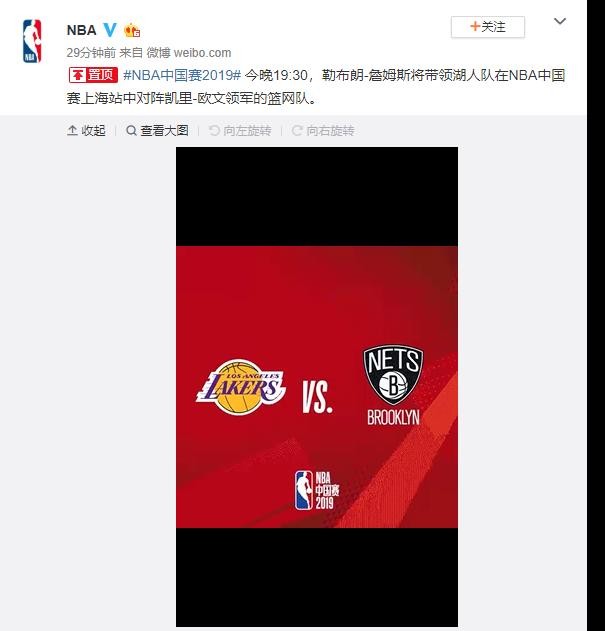 今晚19:30,NBA中国赛上海站(湖人VS篮网)将照常举行