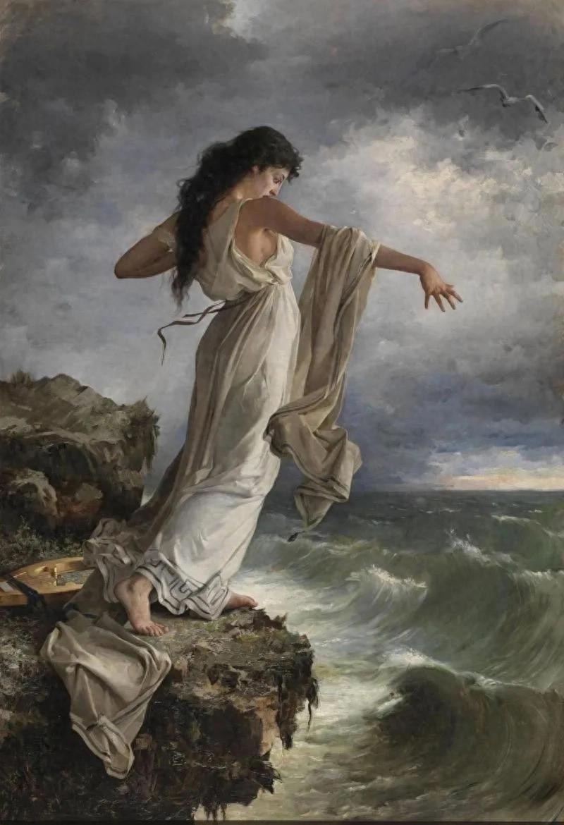 不过,虽然她从小就很有才华,但萨福的生活并不是一帆风顺。她的爱情故事可谓是跌宕起伏,跟现代的偶像剧有得一拼。她爱过,失落过,写过无数动人的诗句,简直就是古希腊的“情感小达人”。