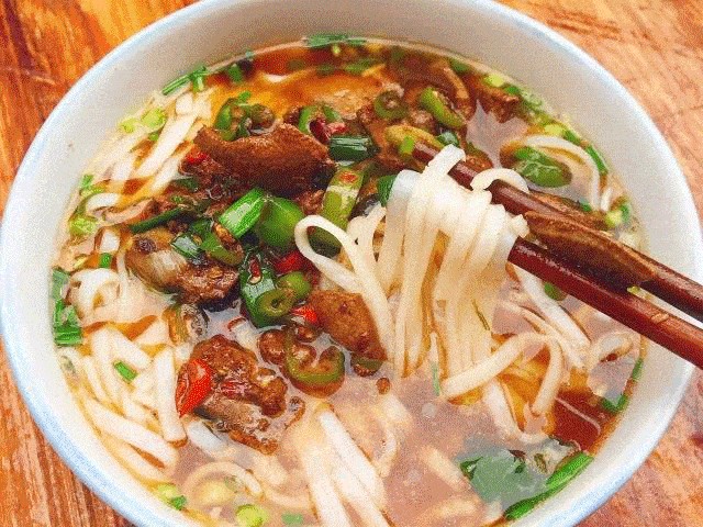 湘西米粉采用富硒大米加工而成,其粉条十分劲道,粉丝粗而汤汁少,让你能更专心地品味米粉本身的Q弹。