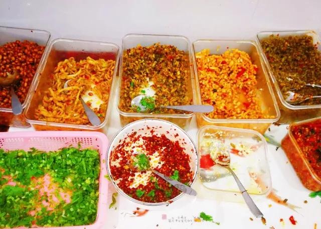 富有韧性的米粉,辣的叫的红油、沾满红油的臊子,还要注入灵魂山胡椒油。一汤一粉一臊子一辣油。