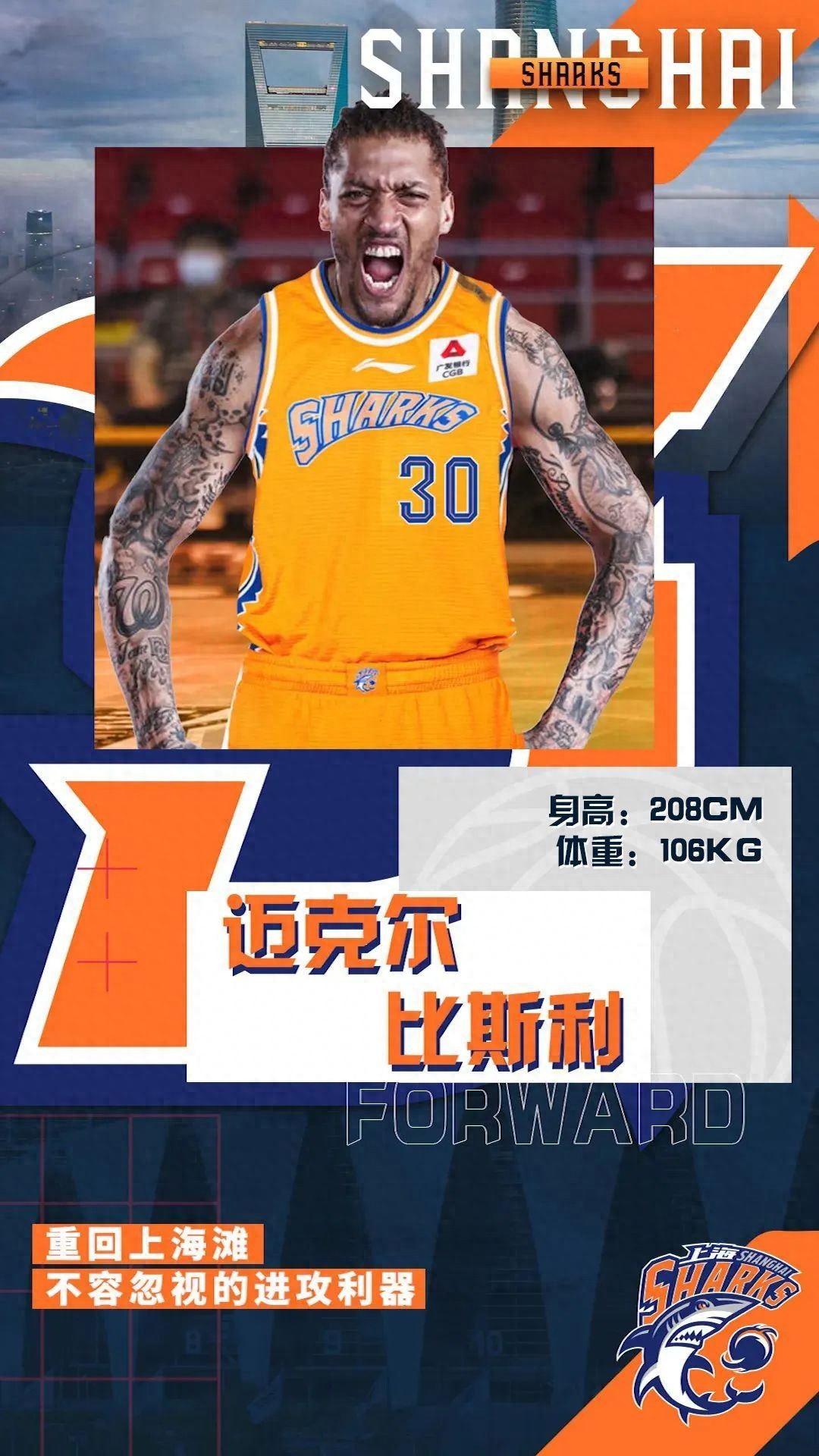 比斯利是CBA和上海男篮的老熟人了,早在2014年,他就加盟过上海男篮。当时的比斯利才25岁,正值当打之年。2014-15赛季,他在上海队场均27.1分10.4篮板5.2助攻,投篮命中率51.3%。2015年全明星,比斯利狂轰59分荣誉MVP。