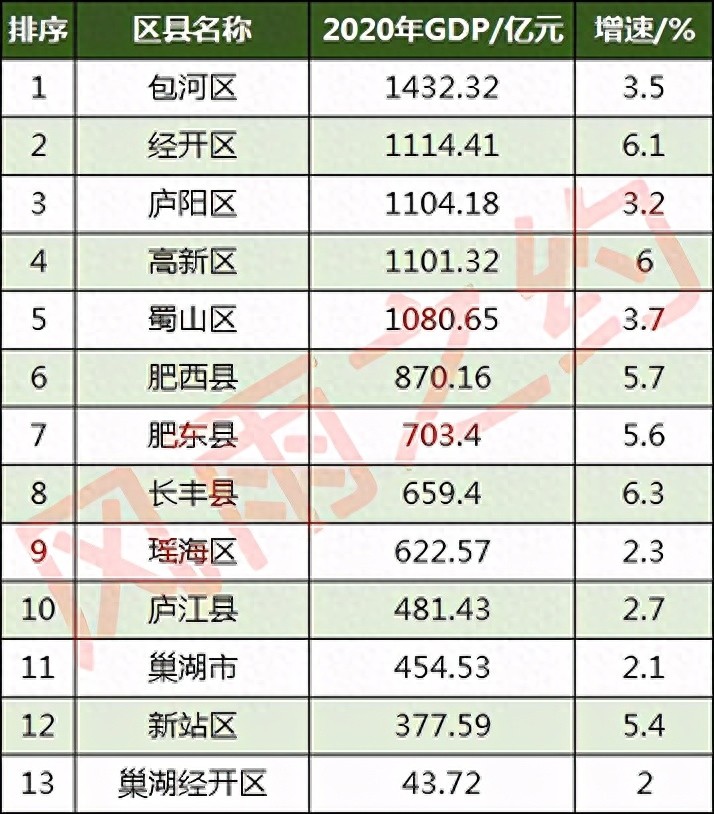 合肥各区县GDP一览:庐阳区1104亿,长丰县659亿