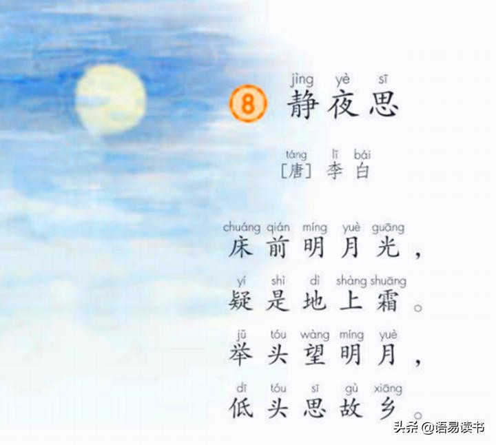 学习古诗,重在朗读、背诵和理解。《静夜思》是唐代浪漫主义诗人李白的作品,是一首语言浅显却感情真挚的思乡曲。全诗虽然只有二十字,却成功地刻画了外出游子的静夜思乡之情。